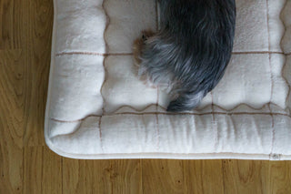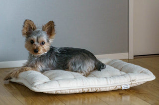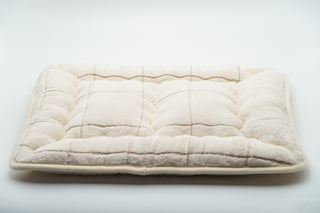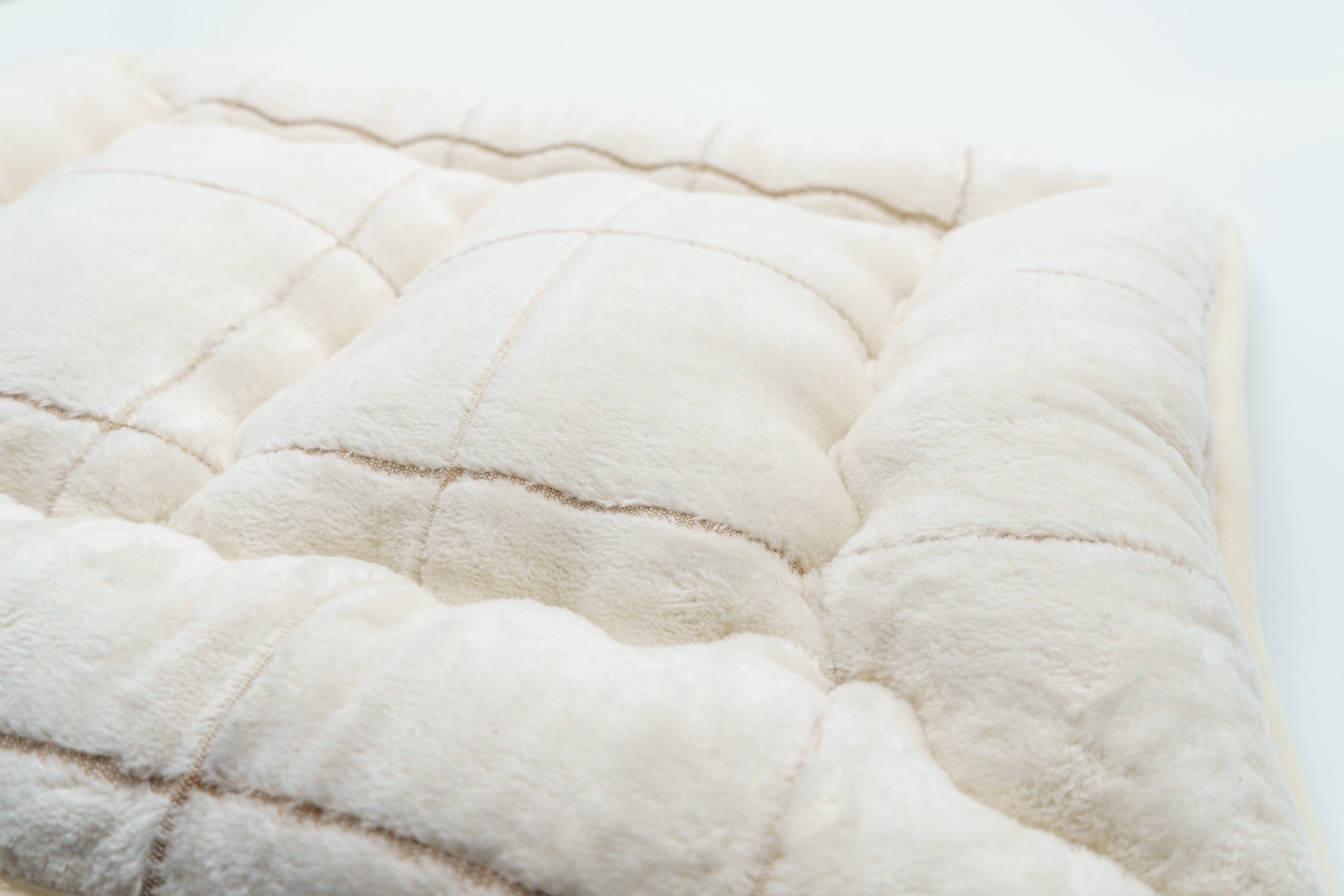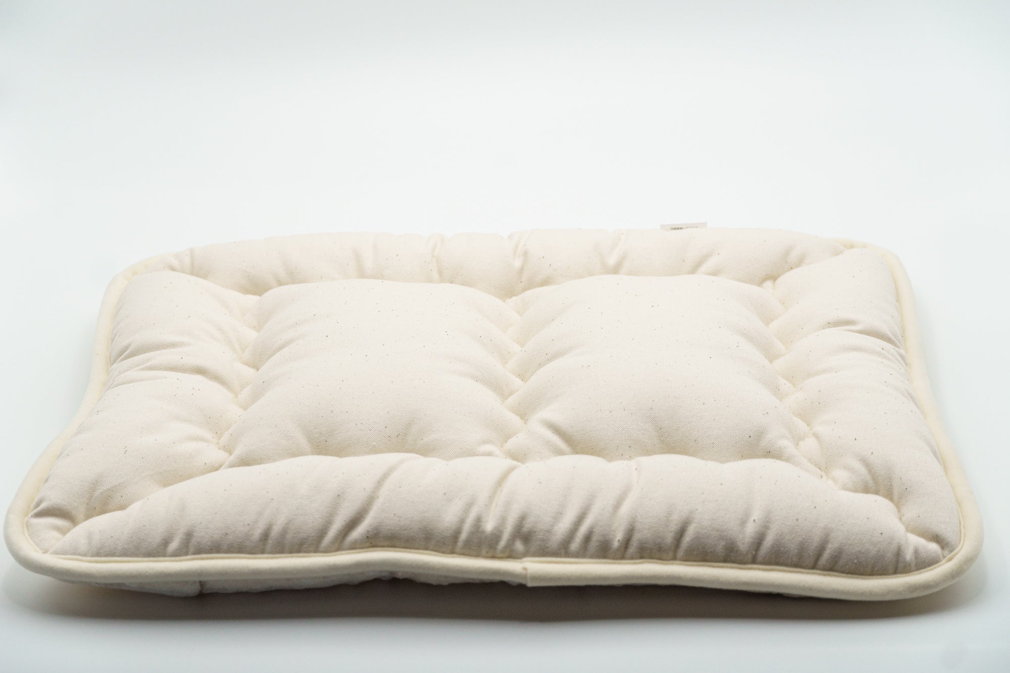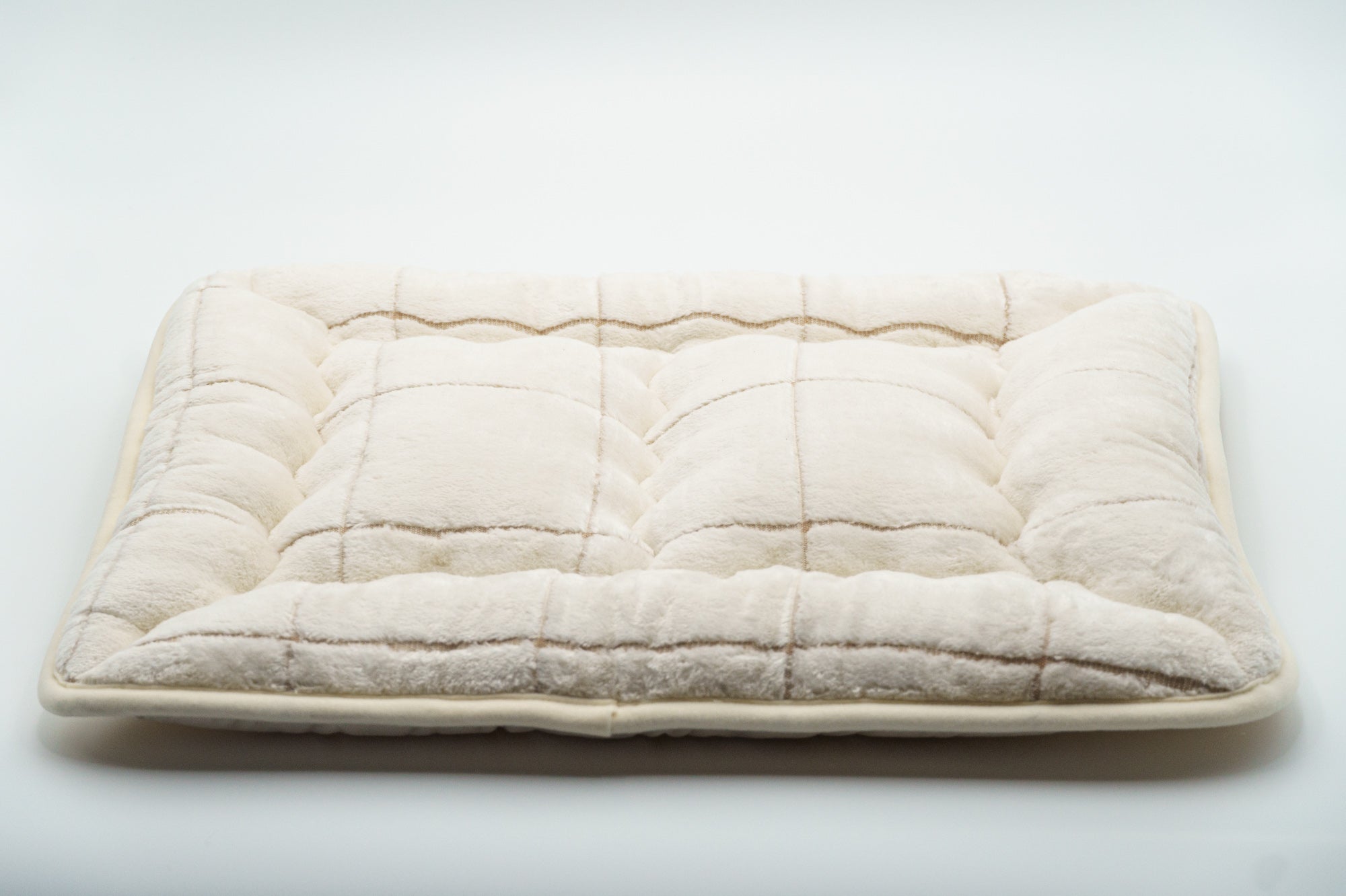 人間の赤ちゃんのお布団を作っている日本国内の縫製工場で作った、わんちゃん用のウォッシャブルマットです。愛犬が横になりたい時のマットとしてお使いいただけます。 また、マットを半分に折ってバックに入れ、お出掛けの際にも持ち運びいただけます。綿100%素材なので、最高の肌ざわりで、静電気もおこりにくいです。